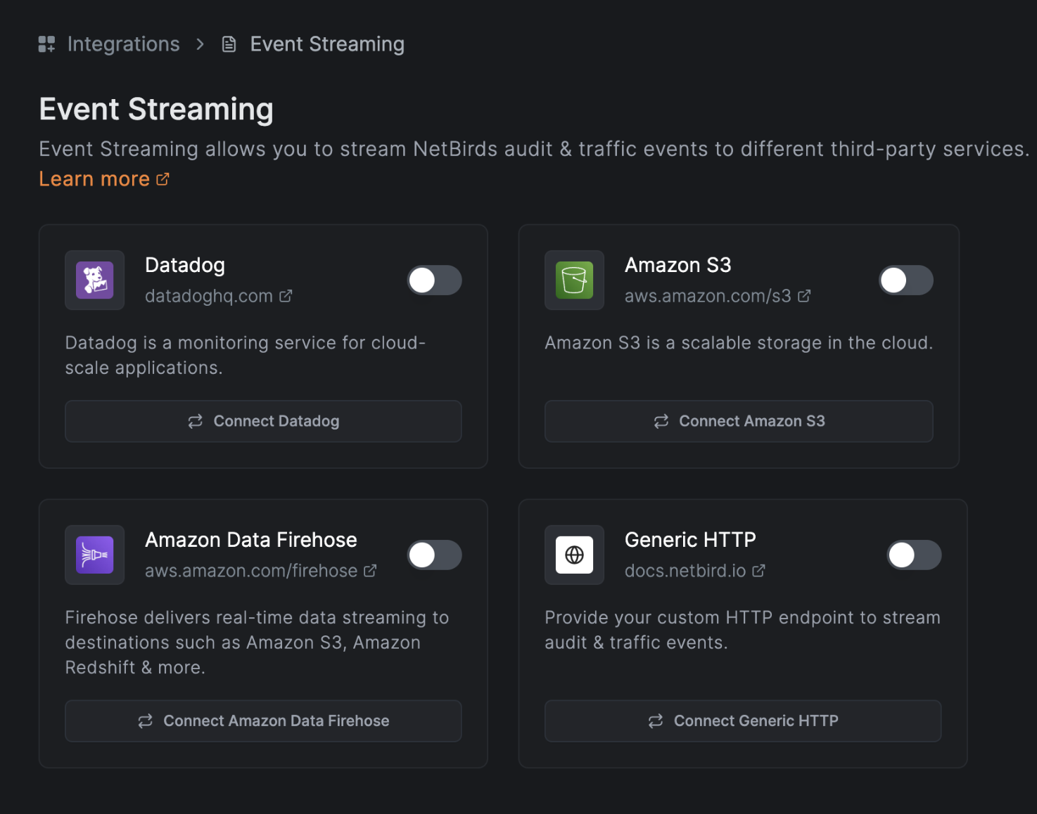 NetBird now supports streaming network activity events directly to any HTTP/S endpoint through its new Generic HTTP endpoint integration. This capability enables you to seamlessly integrate NetBird with your SIEM systems, observability platforms, custom applications, or third-party services. Ultimately, this feature enhances security and operational awareness by enabling immediate analysis, alerting, and auditing of network events within your organization's infrastructure tools.
