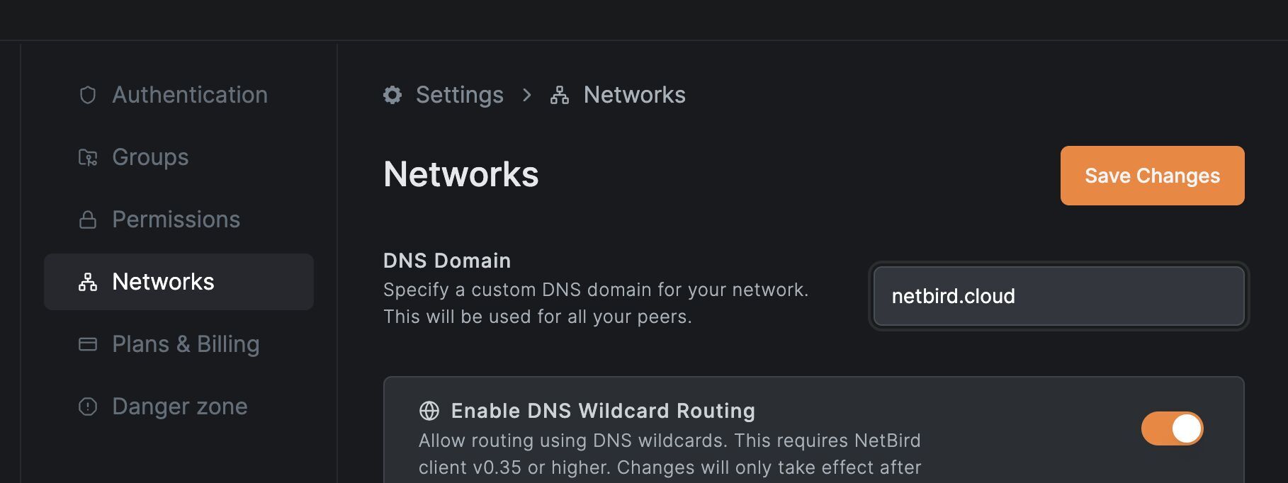 The custom DNS domain has been a highly anticipated feature by the community. It is now possible to change the domain for all your NetBird peers on a per-account basis. This means you can replace the previously fixed peer1.netbird.cloud FQDN with your own custom domain, such as peer1.my-org.com. Please note that these DNS records are only available for NetBird peers connected to the NetBird management server.